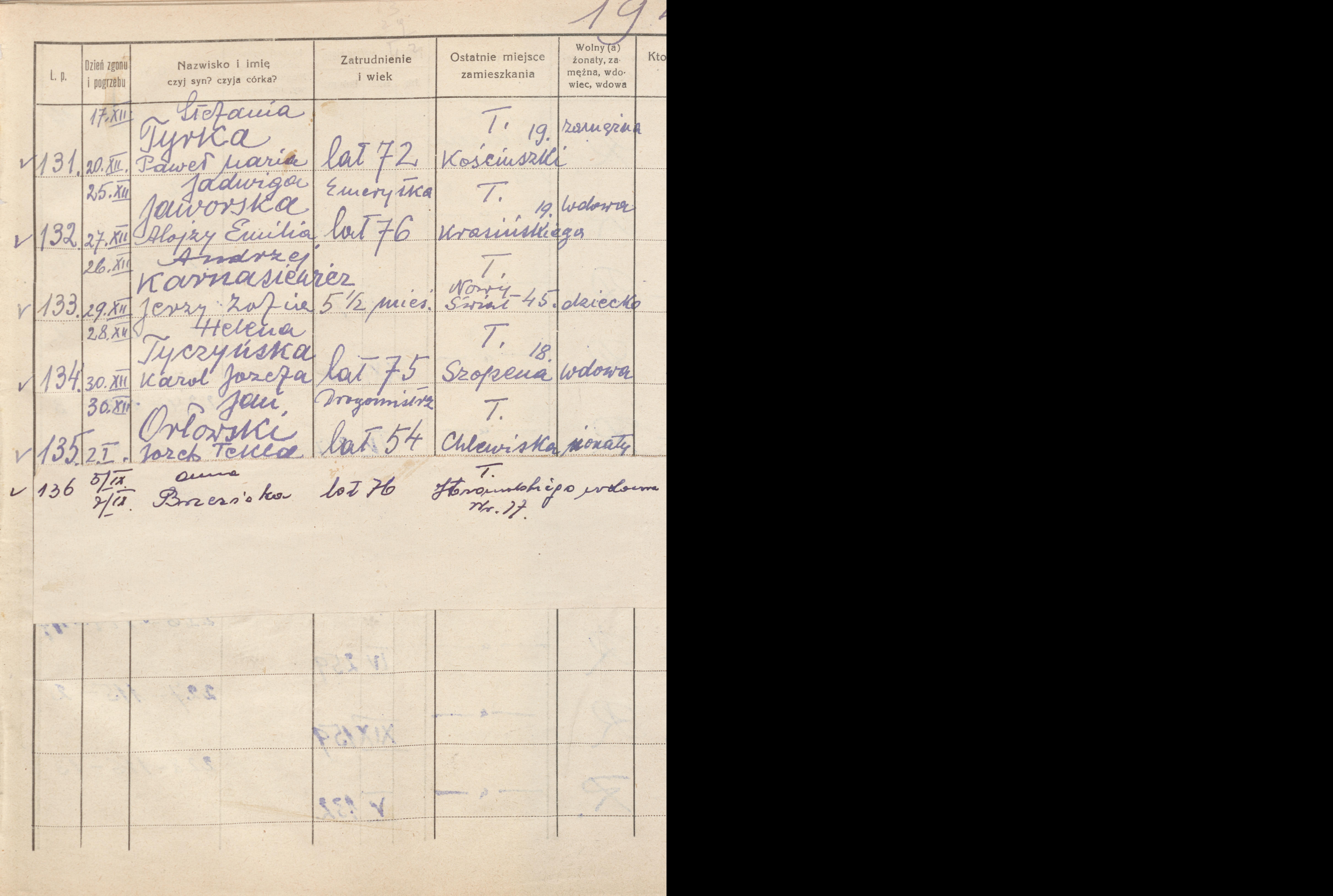 Terminarz pogrzebów