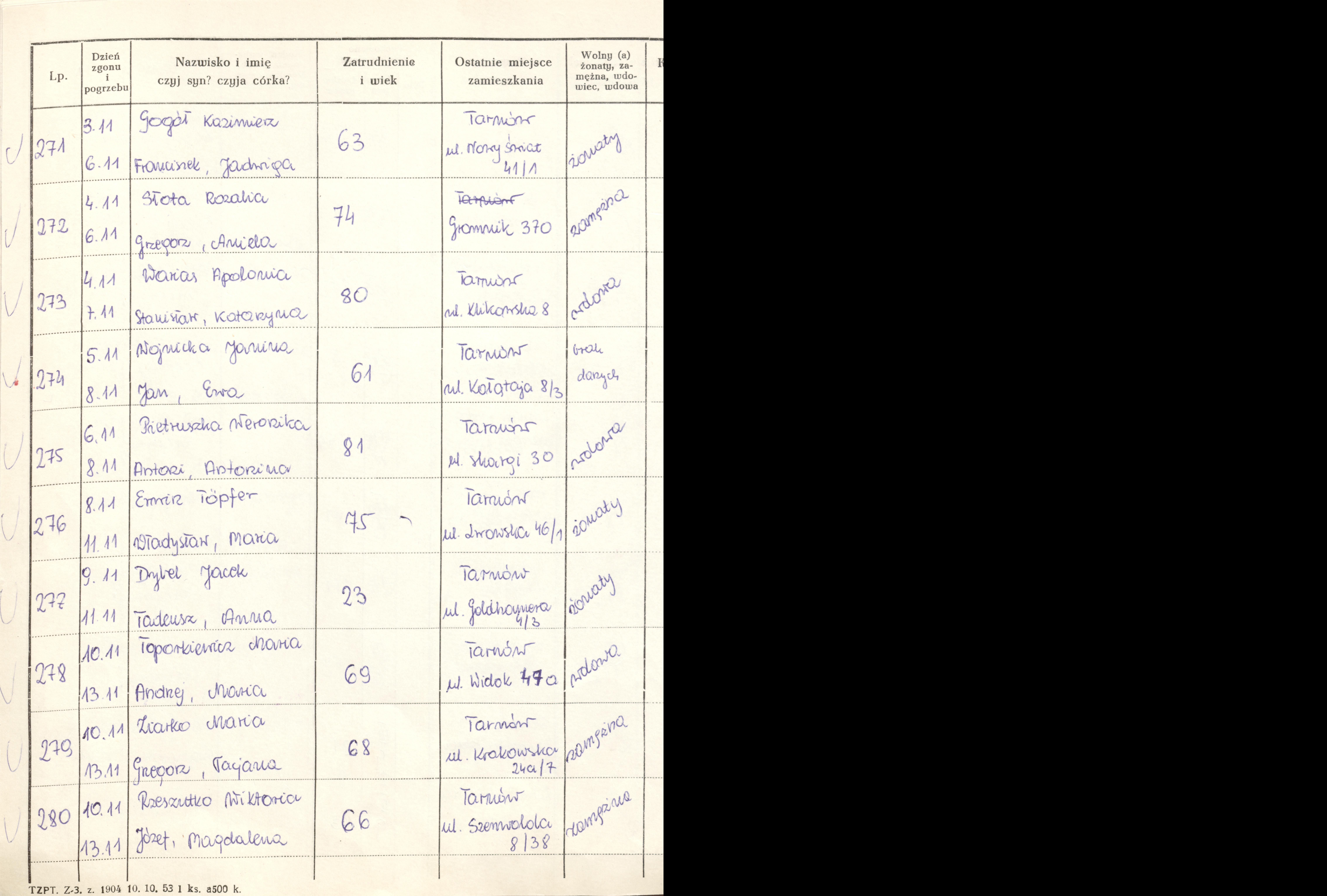 Terminarz pogrzebów