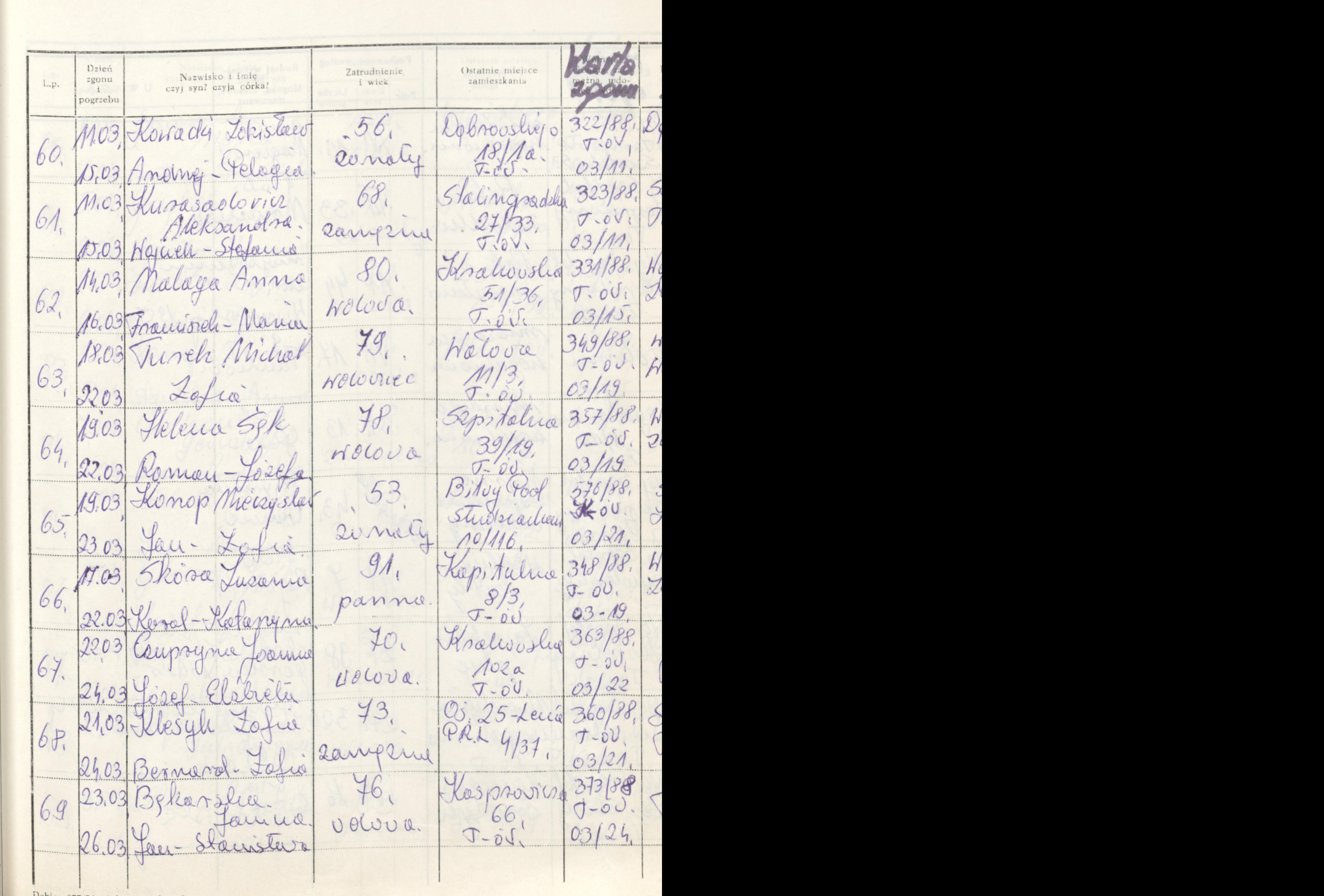 Terminarz pogrzebów