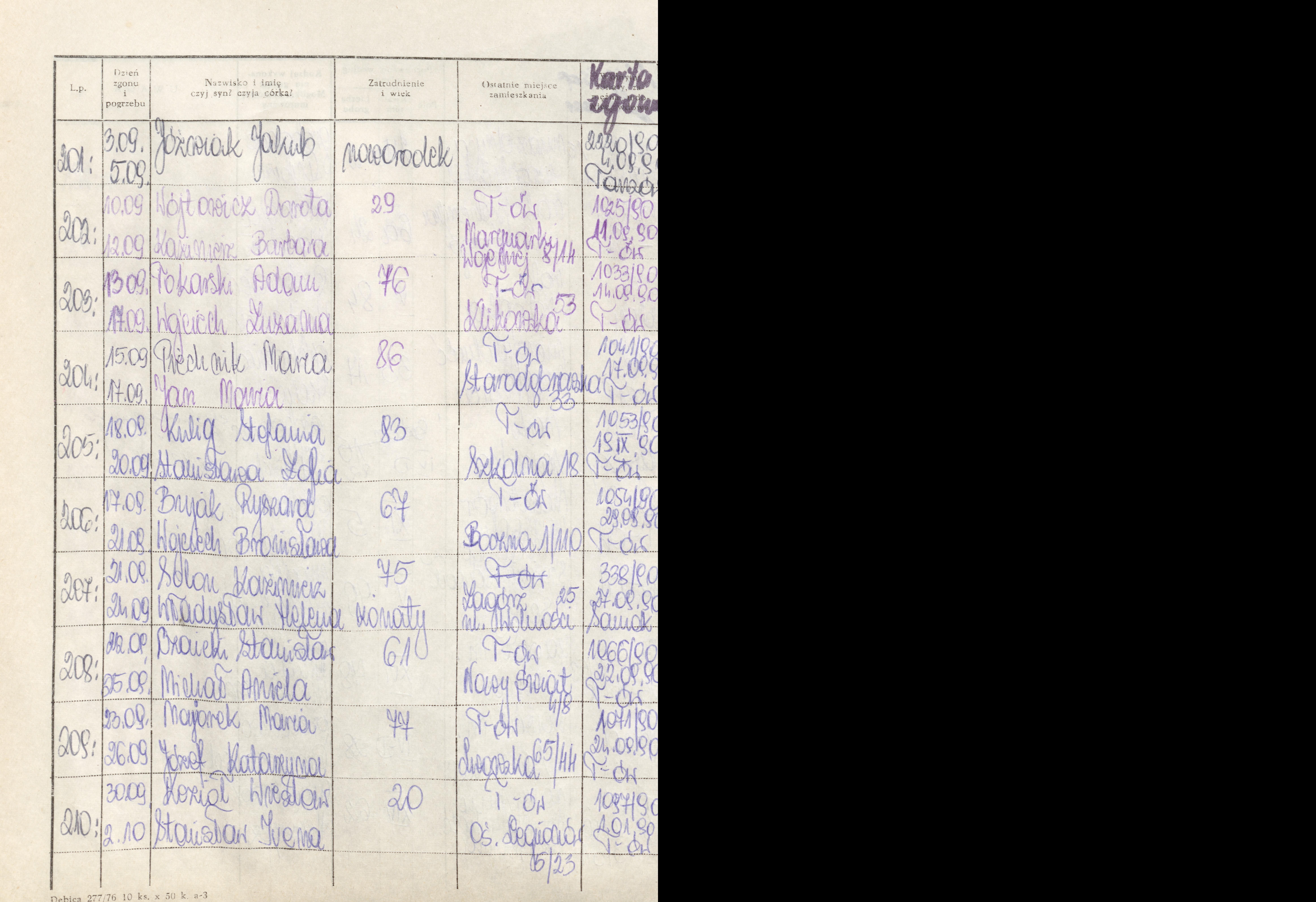 Terminarz pogrzebów