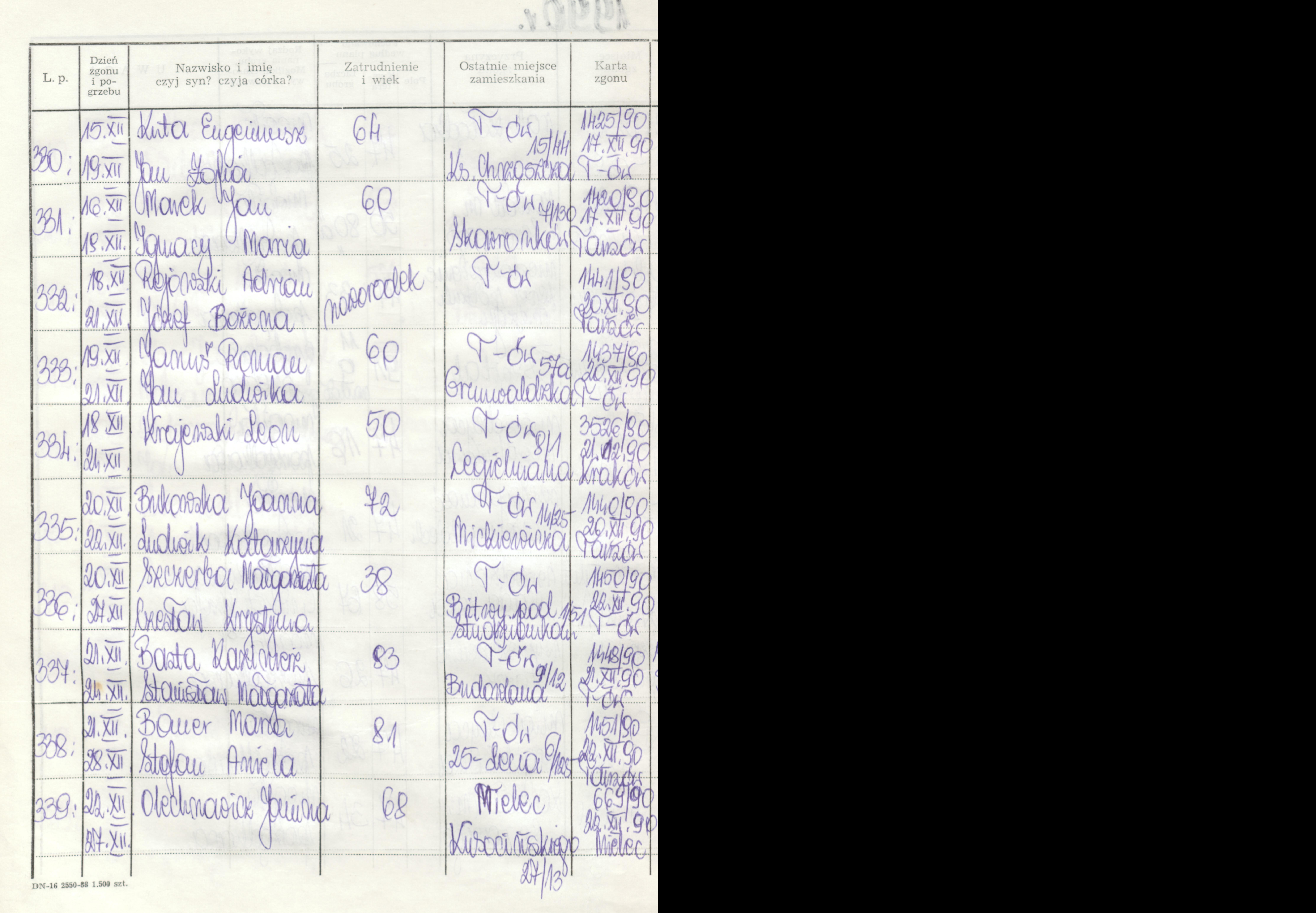 Terminarz pogrzebów
