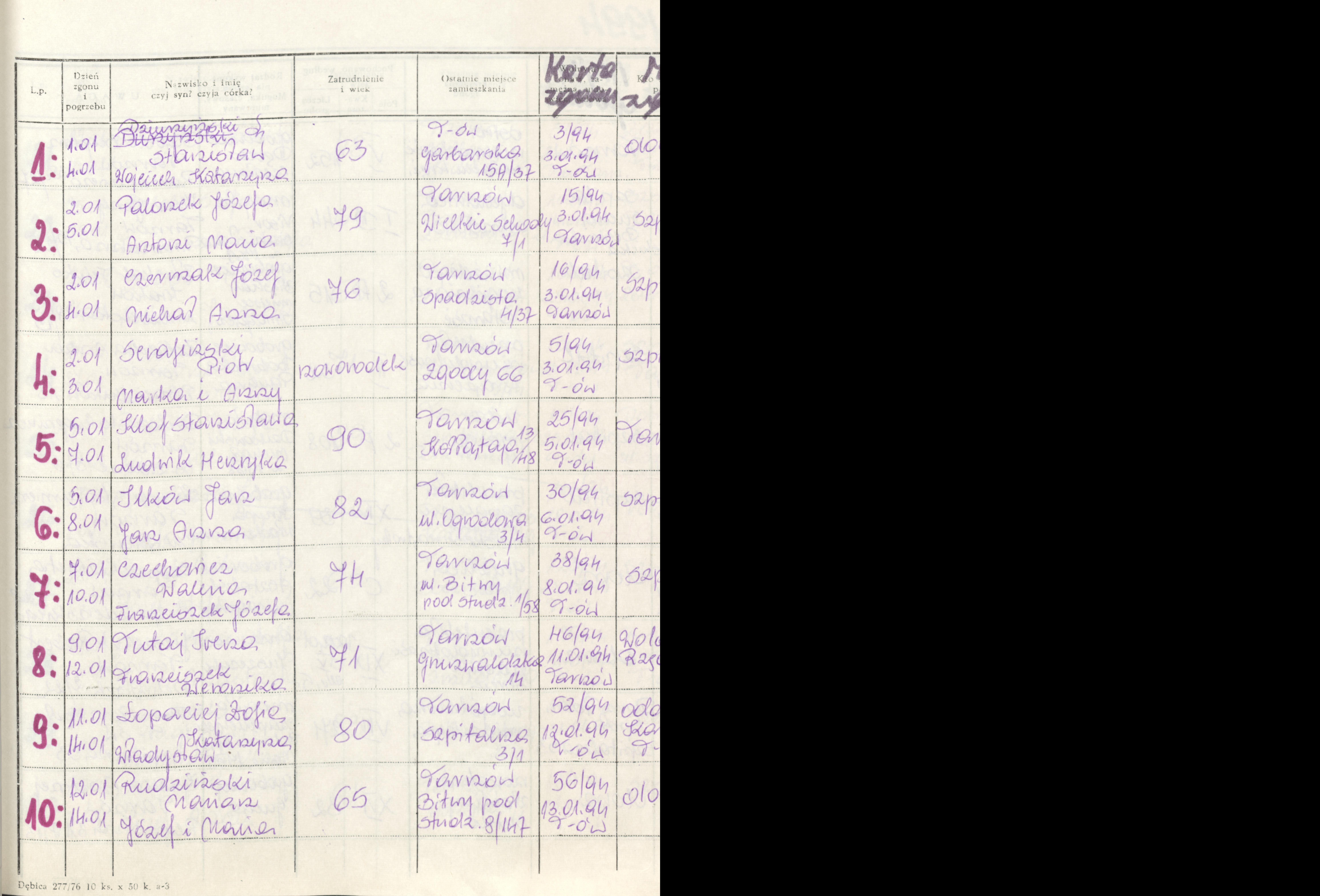 Terminarz pogrzebów
