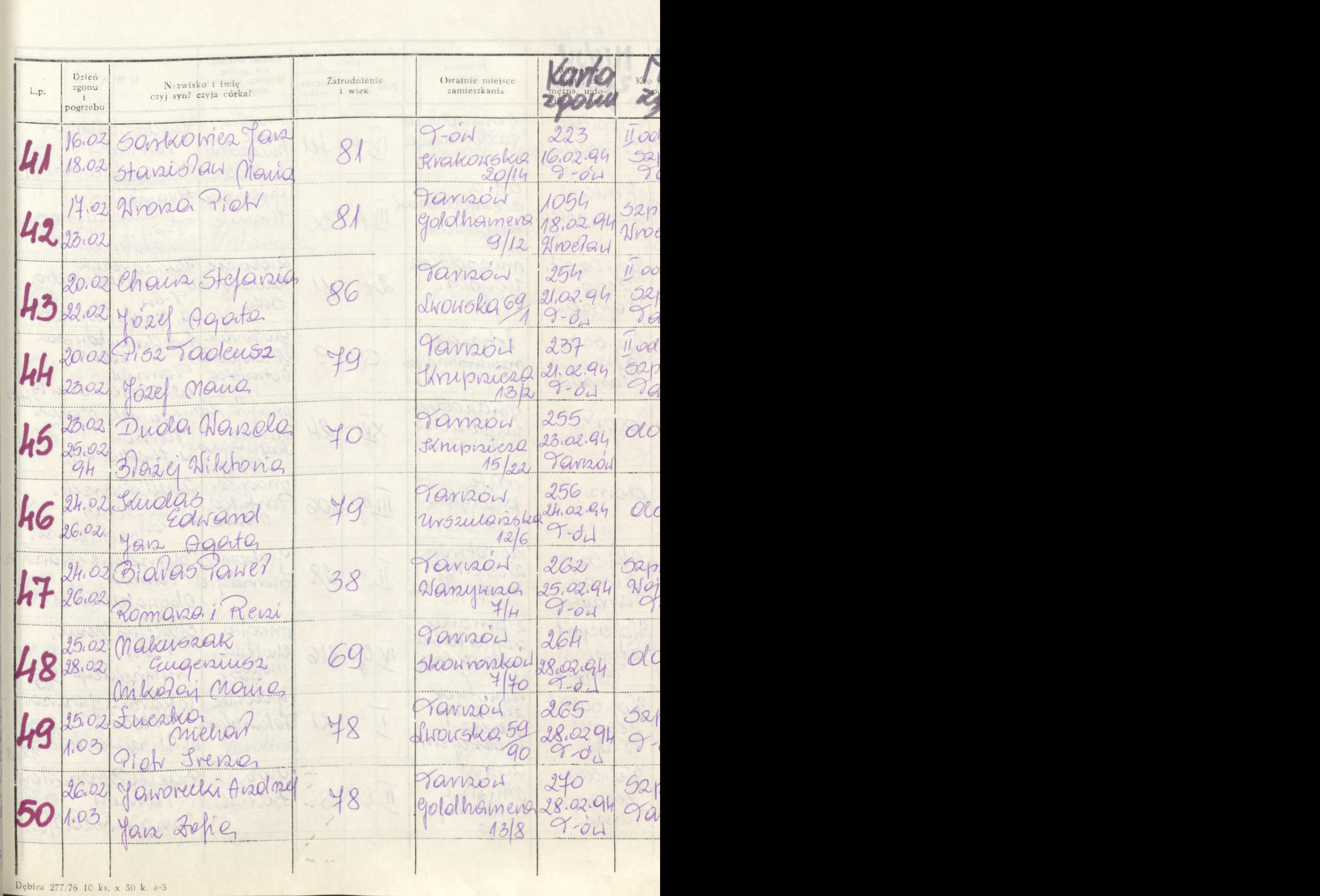Terminarz pogrzebów