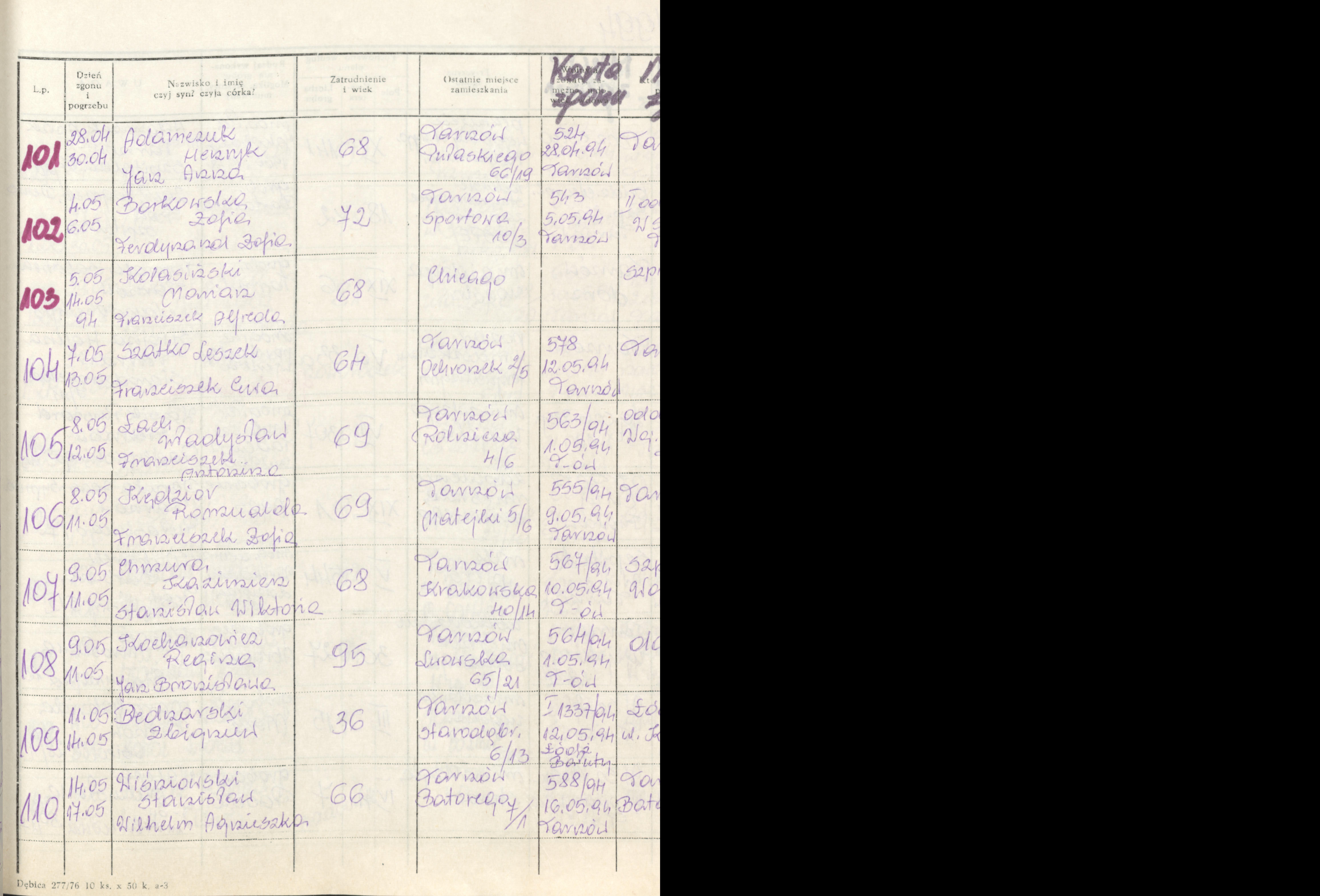 Terminarz pogrzebów