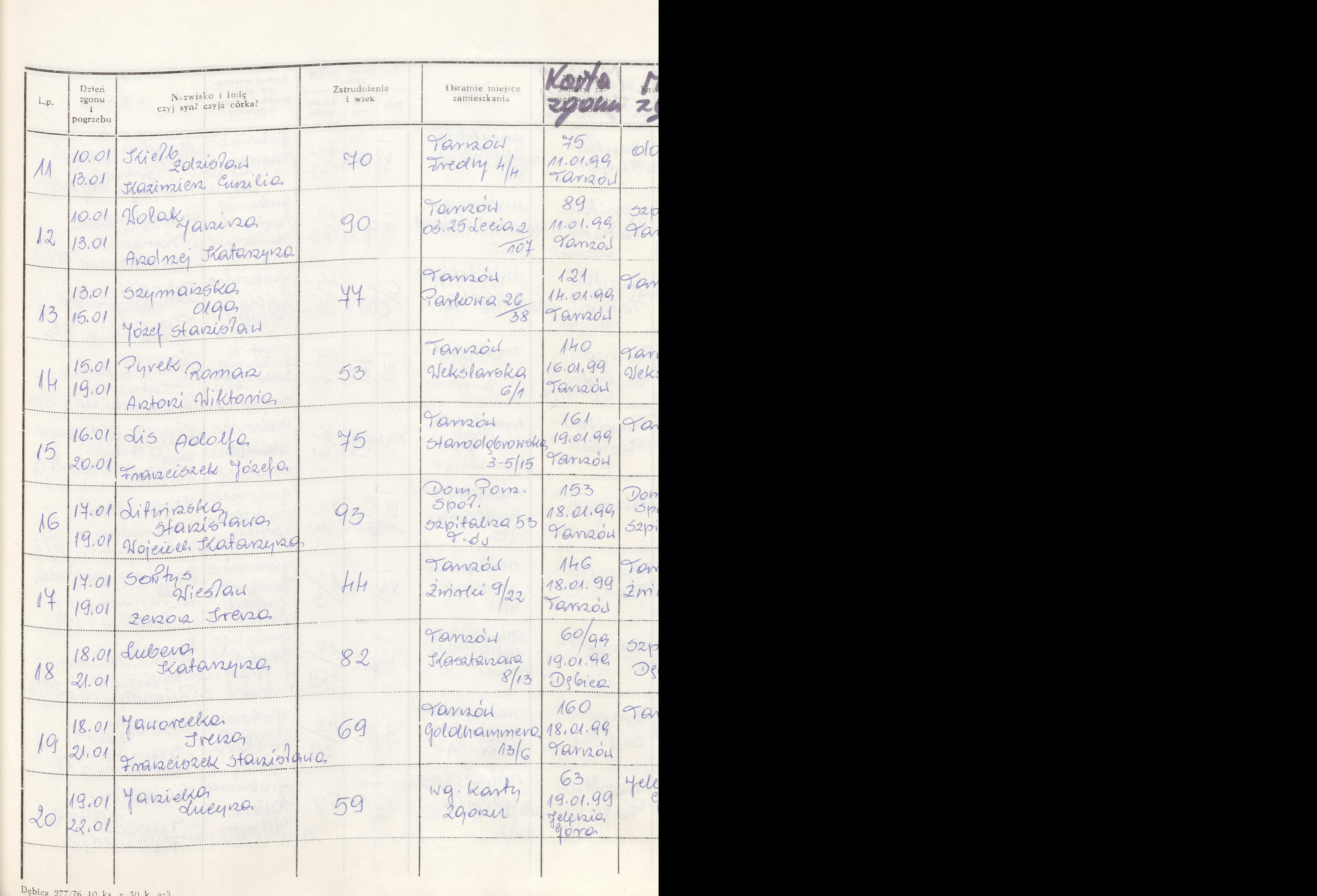 Terminarz pogrzebów