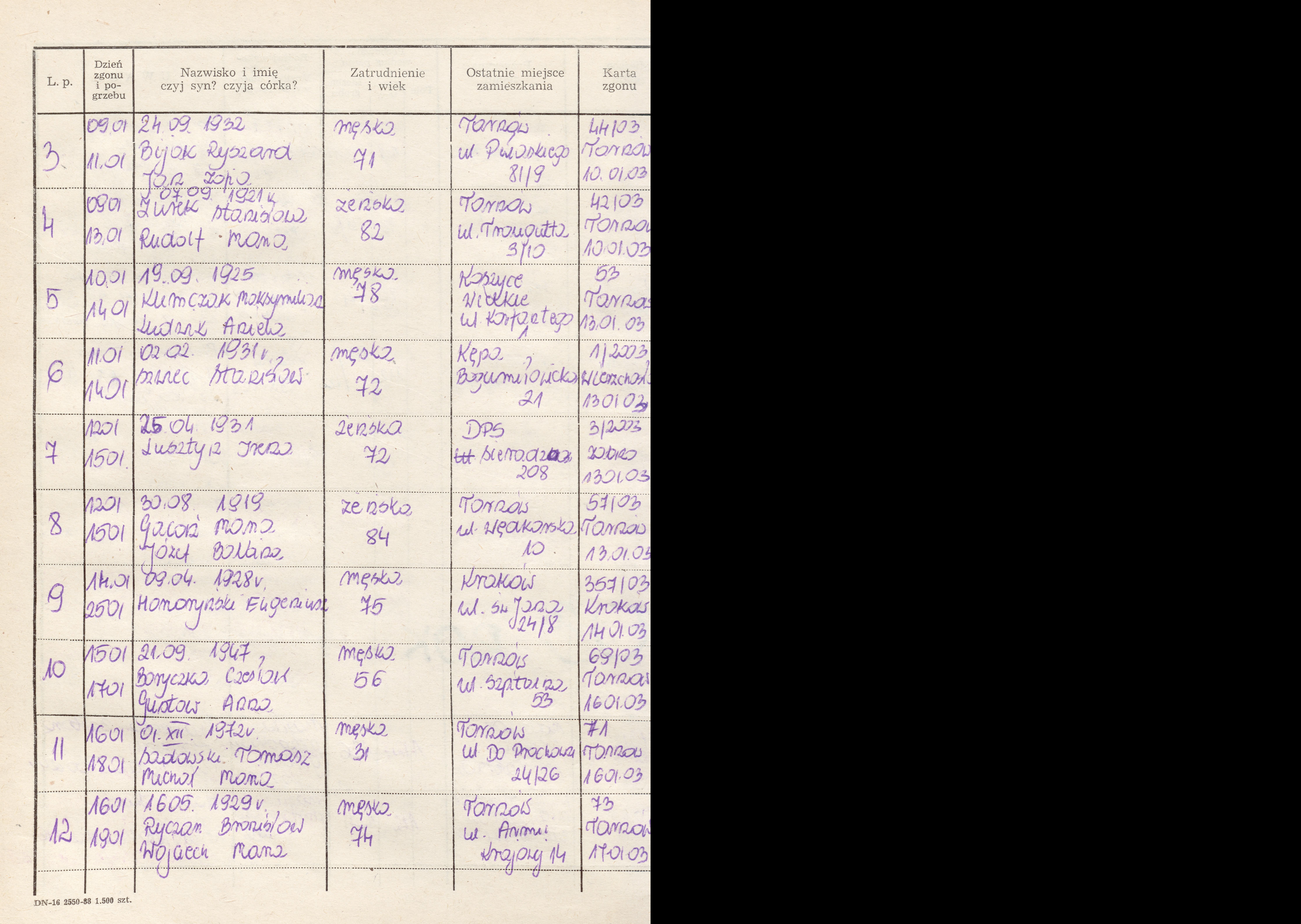 Terminarz pogrzebów