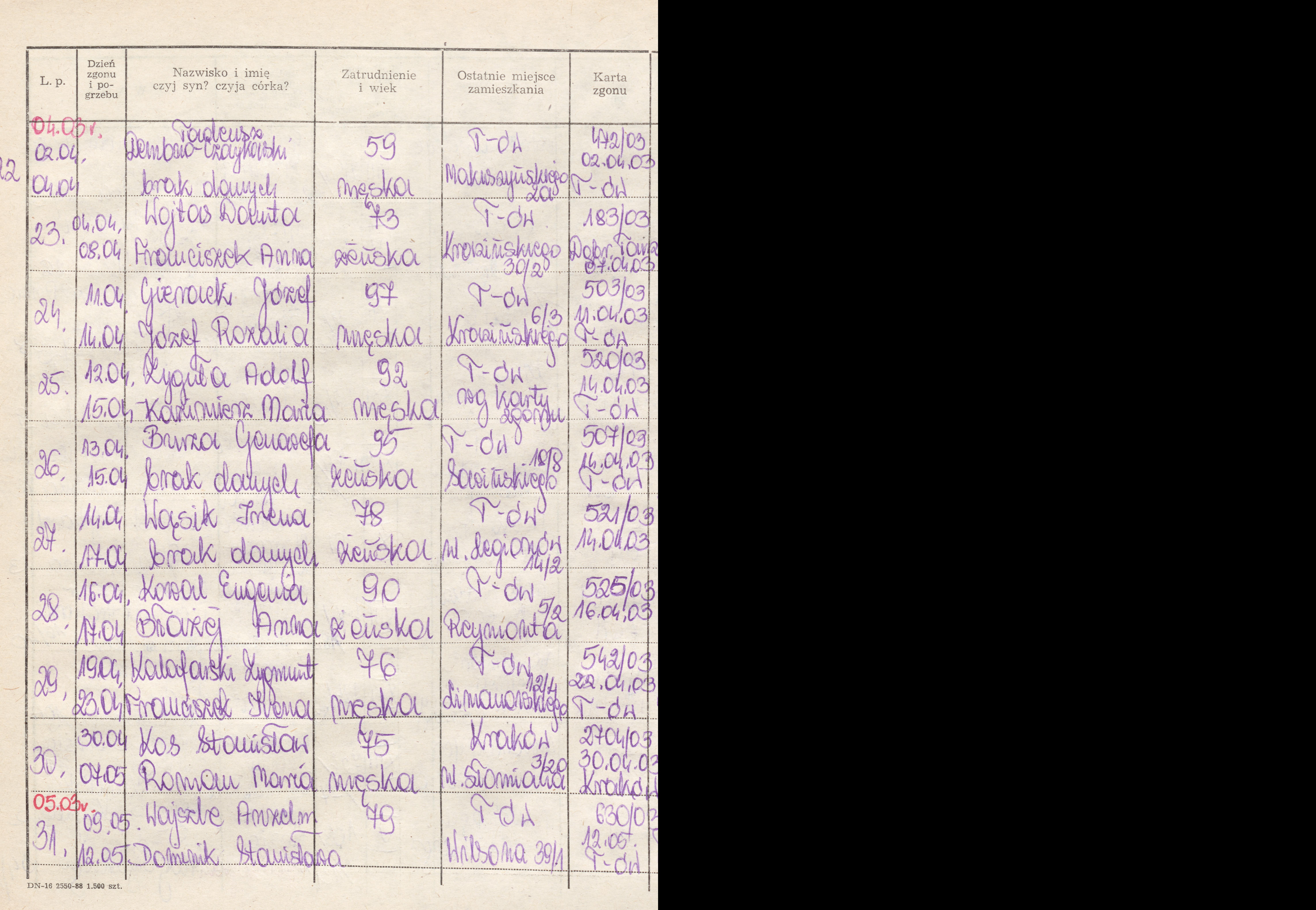Terminarz pogrzebów