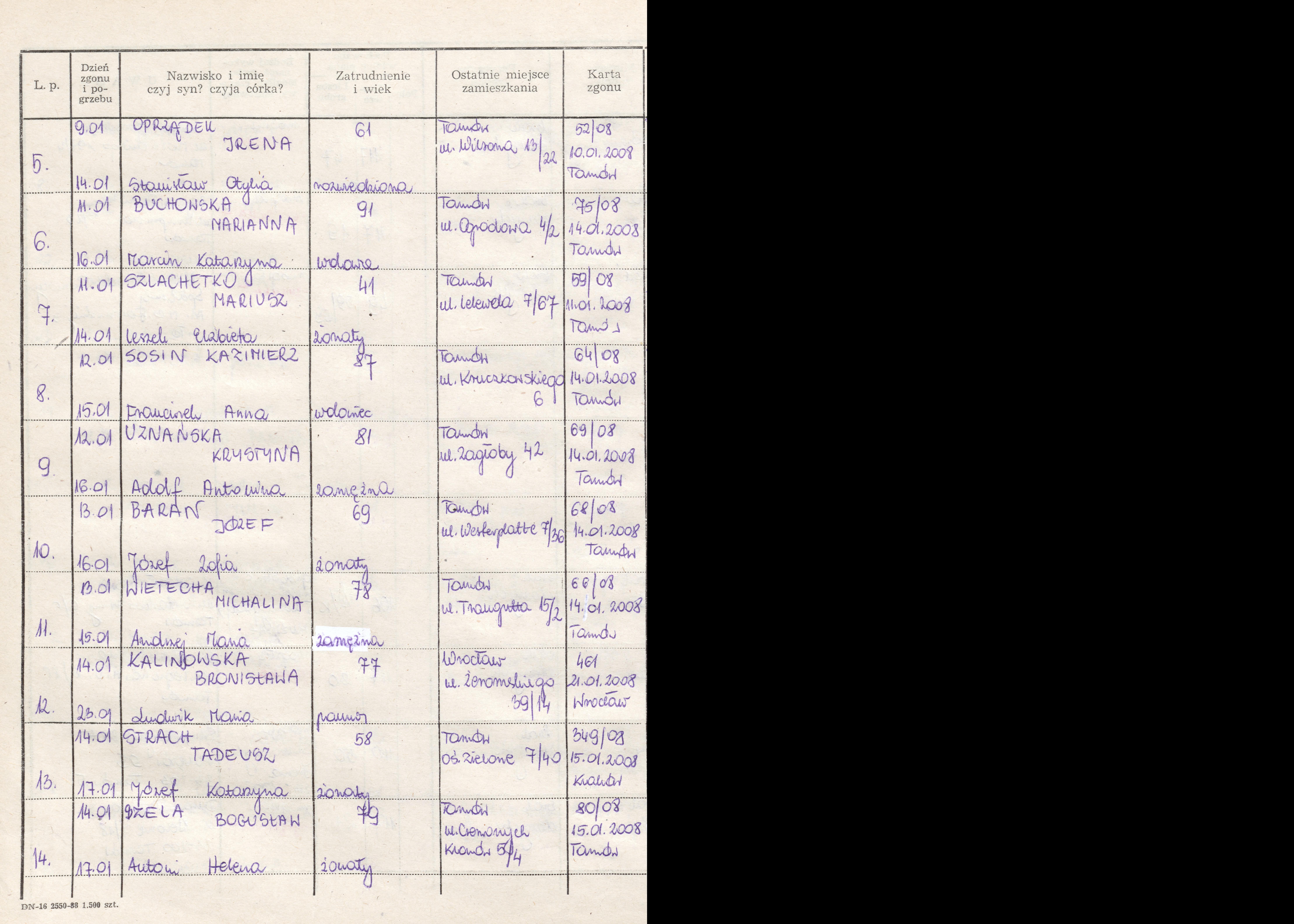 Terminarz pogrzebów